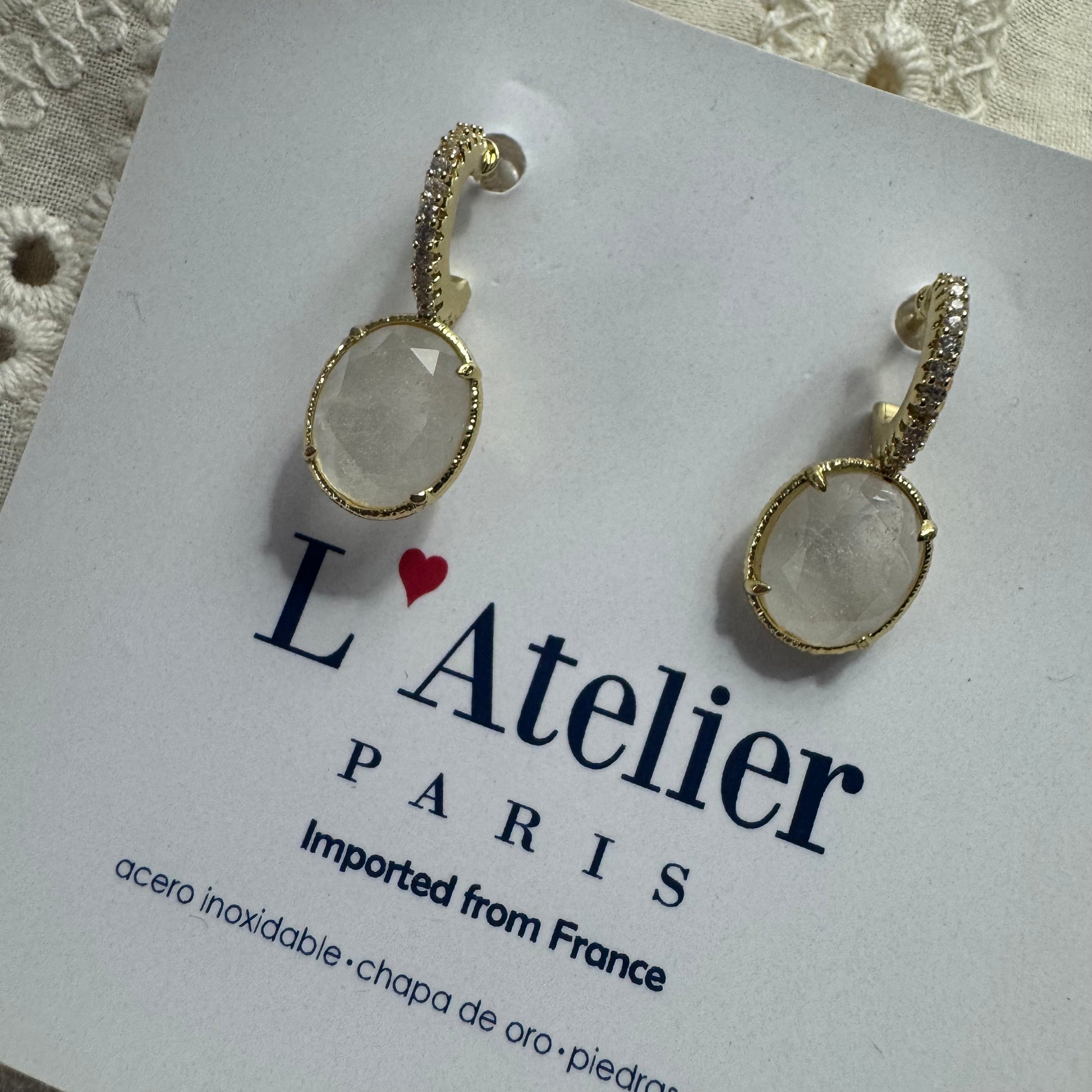 Medida: 2.4 x 1 cm Material: acero inoxidable, ágata y cristales